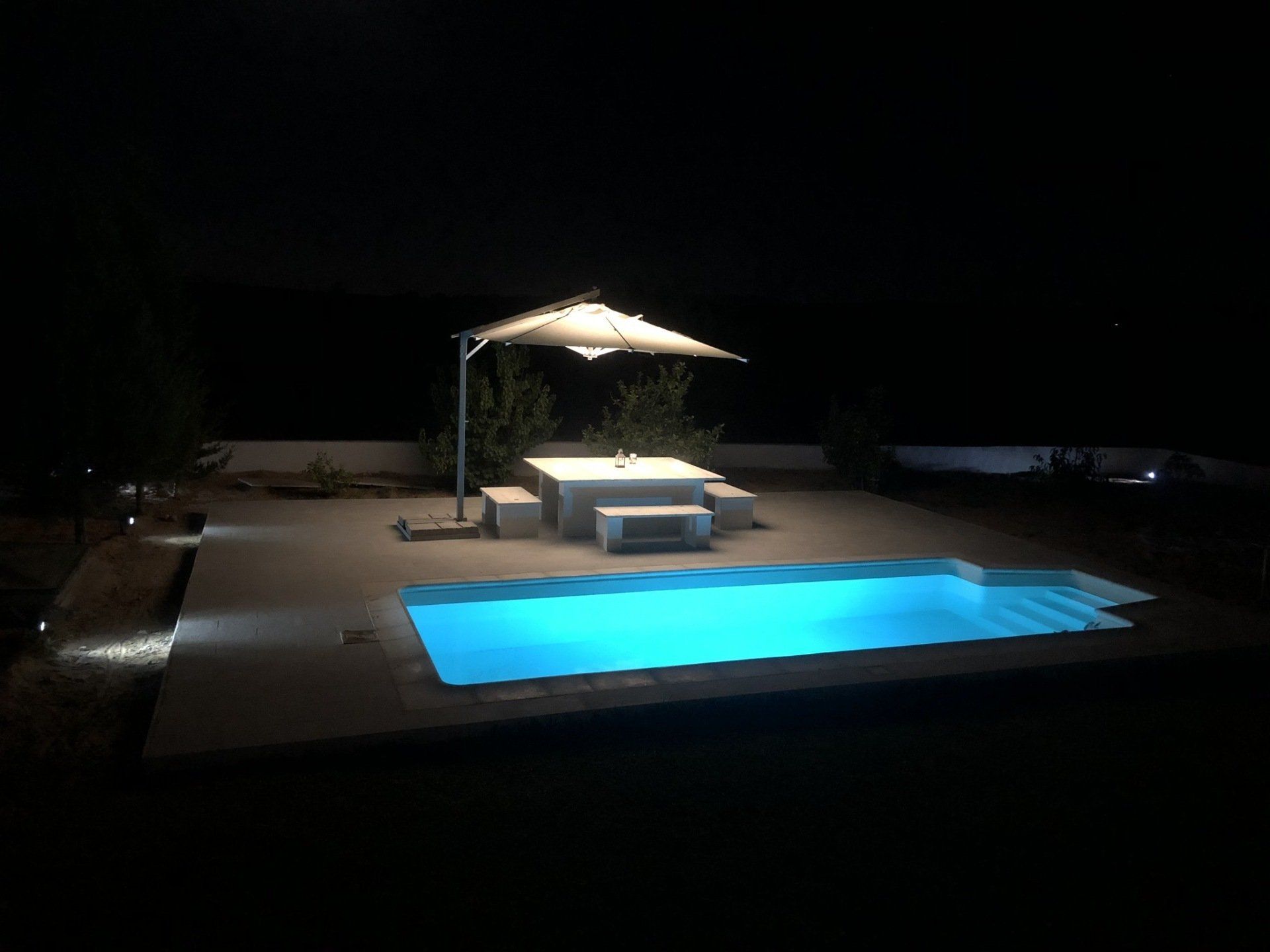 À l'extérieur, vous trouverez une piscine, un grand jardin avec des arbres fruitiers et une terrasse avec une grande table protégée par un parasol.